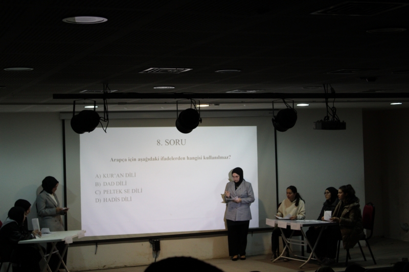 Sunuculuğunu Merve Demirhan ve Zeynep Bozdoğan’ın yaptığı program, Doç. Dr. Asiye Çelenlioğlu’nun kısa açılış konuşmasının ardından başladı. Sonrasında İmam Hatip Lisesinin öğrencileri tarafından hazırlanan Arapça Günü videosu seyredildi. Ardından Merve Demirhan, “Neden Arapça?” isimli sunumunu gerçekleştirdi ve sunum sırasında öğrencilere bazı sorular yönelterek sunumu ufak bir soru cevapla sonlandırdı. Merve Dereli ve Nur Betül Çakın’ın hazırladığı Atik Valide yerleşkesinde Arapça ile ilgili yaptıkları röportaj, izleyicilerin büyük beğenisini topladı. Zeynep Bozdoğan hazırlayıp sunduğu “Arap Devletlerine Merhaba Diyelim” adlı sunum ile Arap devletlerini öğrencilere tanıtıp sorularıyla onları da sunumuna dahil etti. Furkan Talha Yazoğlu, “Arapça ve Türkçe Arasındaki Ortaklıklar” adlı sunumunda ortak ifade ve şarkıları anlattı. Ortak şarkıları anlatırken öğrencilere soru- cevap yaptı. Şarkıların çoğunun öğrenciler tarafından da bilinmesi ortalığı ufak bir konser alanına çevirdi. Arife Doğan ve Kübra Koçak tarafından hazırlanan “Arapça Öğrencisinin Dramı” adlı parodi dizi videosu kahkahalar eşliğinde öğrencilerle buluşturuldu. Sunum aralarında verilen Arapça müzik dinletileriyle izleyiciler eğlenceli dakikalar yaşadı.